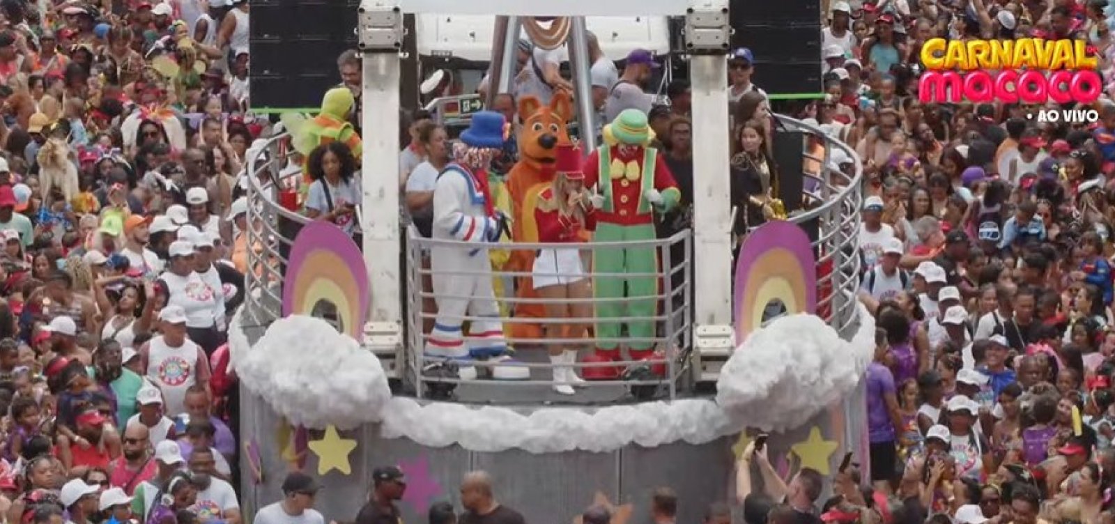 O Carnaval da Macaco Gordo está transmitindo toda a folia, incluindo o desfile do trio de Carla Perez. Neste sábado (14), a cantora homenageia Xuxa e conta com a presença de Patati e Patatá, que acompanham a artista no trio, garantindo animação para toda a família.