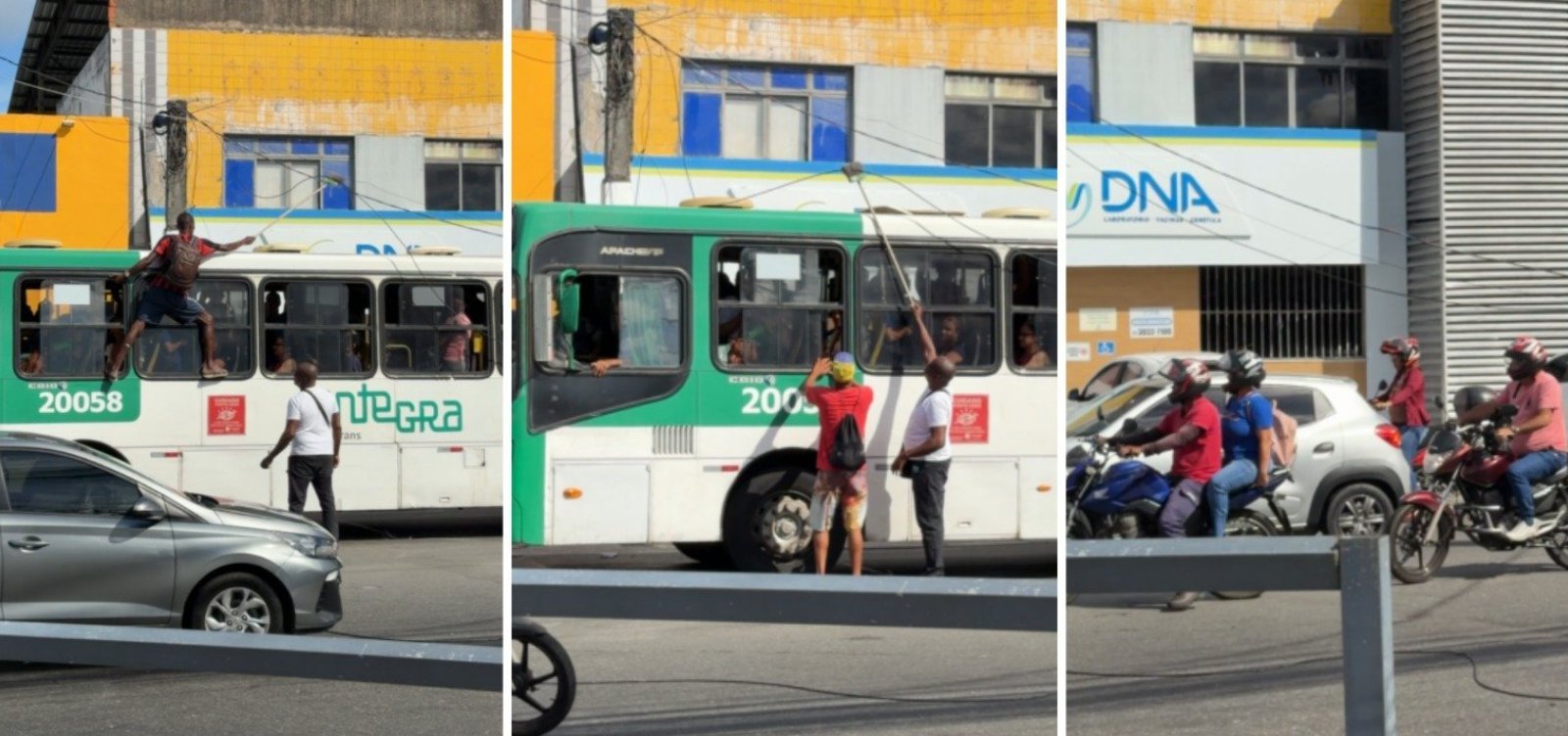 Ônibus fica preso em fios soltos e causa congestionamento em Salvador